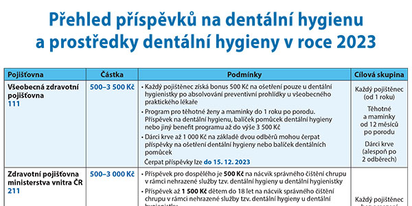 Pojišťovny přispívají na Dentální Hygienu 2023