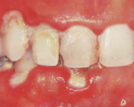 - sondovatelná hloubka dásňového žlábku se prohlubuje nad 6 mm